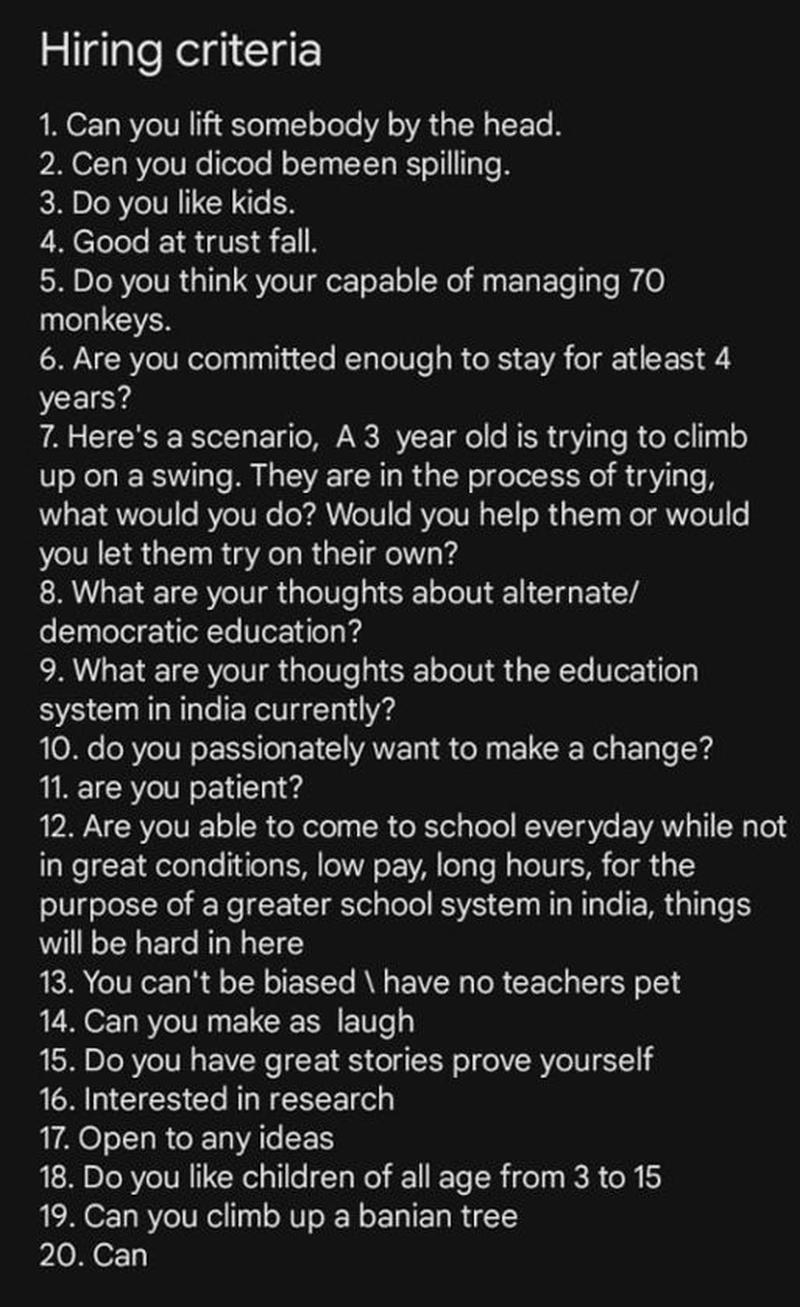 - Next day morning me, Prakash, Julie and two children (Avantika and Hari Sai) went to APU for campus placement. To find new faculties for BeMe. During casual conversation at night we shared with children that we are going to APU for an interview, they got interested, they said we will give you questions - and you need to ask them. They came up with some 20 questions. Finally we decided to take them with us. It was wonderful experience for us and the team at APU to see children in the recruitment process.