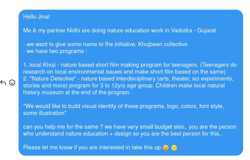 I was thinking about different names.. KhojBeen Mandali suck to my mind. Nidhi also liked it. I started reaching out to people seeking help in visual identity. Rachita called me and gave some ideas about how to start. I had a chat with Ipsa Jain, Ashra, Nipun Prabhakar, Jinal, Chaitali and few other folks about the same.