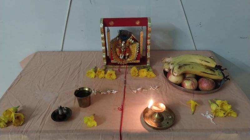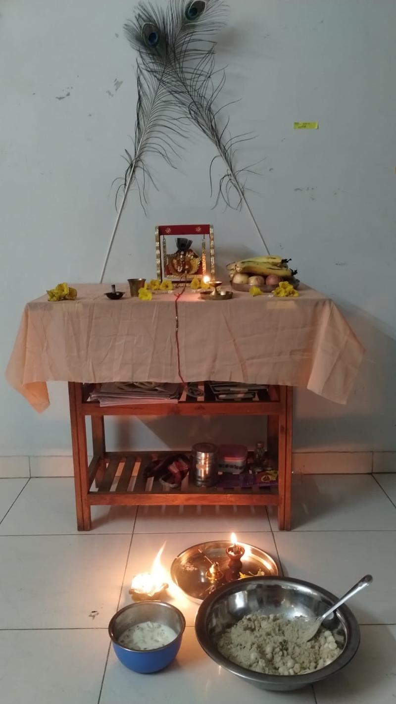 Friday we did prep for Janmashtami, and Saturday evening we celebrated it wholeheartedly. I invited a few friends but they couldn’t join. One of my office colleagues / friend joined and helped us a lot with cooking and preparation of the whole thing. I am very grateful to her. I was so happy looking at Nidhi. She was super happy. She had a long-standing wish to celebrate Janmashtami at home, and I am glad that we could make this happen.